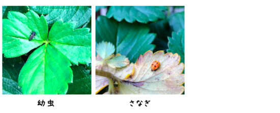 するといつの間にかてんとう虫の幼虫がいちごプランターに住み着いていたのです!