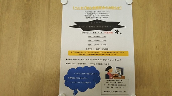 9月1日より、ペンタブ初心者講習会がおこなわれます。