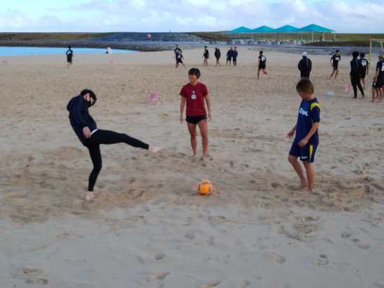2月13日(土)朝、ビーチサッカー見学&体験を行いました!