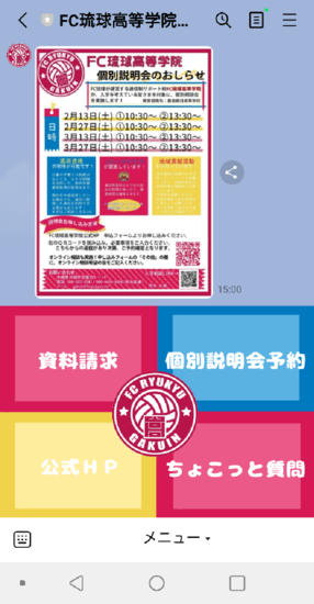 FC琉球高等学院入学相談係のリンクから、お気軽に友だち追加お願いします(^-^)