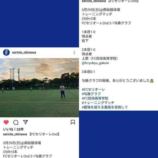 →公式Instagram セリオーレ沖縄スポーツクラブ