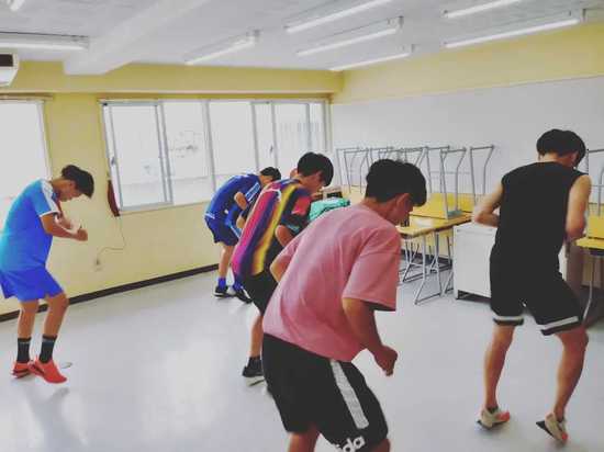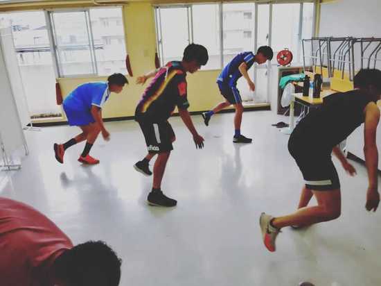 雨だったので、サッカー部は午前中校舎内でフィジカルトレーニングを行いました!