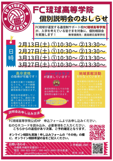 FC琉球高等学院入学相談係のリンクから、お気軽に友だち追加お願いします♪