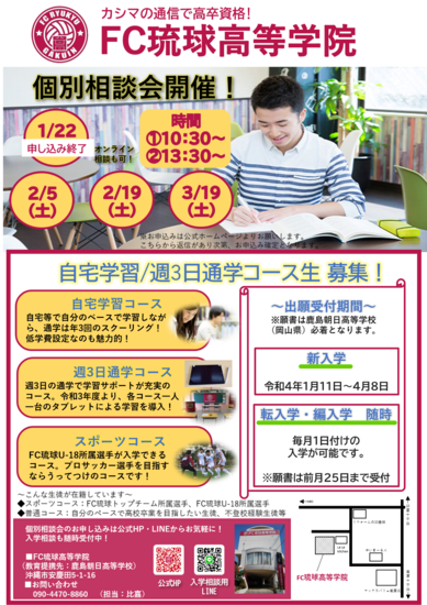 FC琉球高等学院では、開催予定の相談会以外にも随時入学相談受付中です!