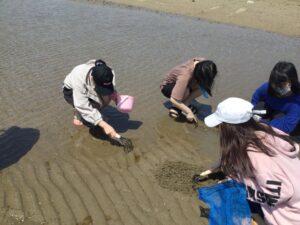潮干狩り 2021-05-07 キャンパスブログ 正化学園高等部 姫路キャンパス(提携鹿島朝日) ※この行事は緊急事態宣言前の4月21日に実施しました。 こんにちは、姫路校です。 新入生の人たちを中心に潮干狩りに行ってきました。 新入生にとって初めての行事。 最初はぎこちなく始まる潮干狩り… ありましたー! 嬉しそうな顔をする生徒。 「あっちのほうが穴場かも…」 お店の人にアドバイスをいただき、生徒たちに報告。 深さ10cmに広く掘るのがコツです! わ~~~!!たくさんとれたね。 行事の終わりには連絡先を交換する生徒がチラホラ…。 ともだち作りのいいキッカケになったかな? 一覧へ
