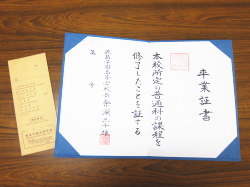 その卒業証書がこちら。2つ折りのケースに入っておりまして結構立派。そして中身には…