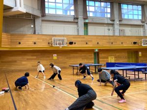いつものように卓球台をセッティングするところから、