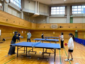体育館での卓球は初めてさん…や
