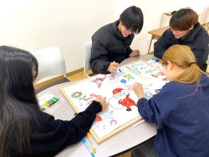 みんなで楽しく1枚のボードにみんなのイメージする「冬」を描いていきます。
