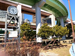 その後、神戸震災復興祈念公園で安全の鐘モニュメントを。