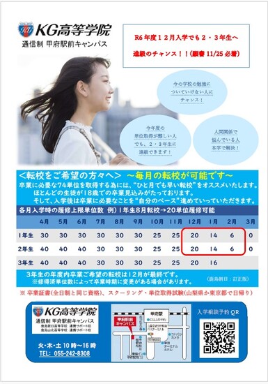 ☆入学願書11/25着で☆→同級生と同じく進級のチャンス(高1・高2)