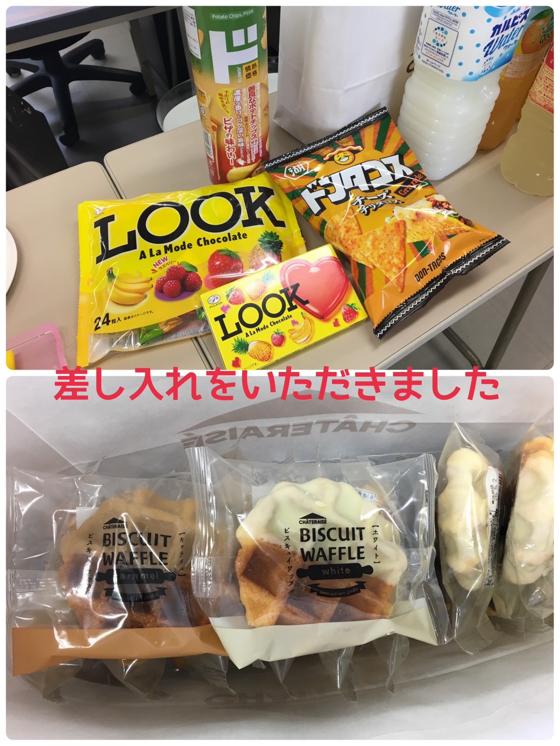 差し入れのお菓子を持ってきてくれる生徒もいて、とてもうれしかったです。