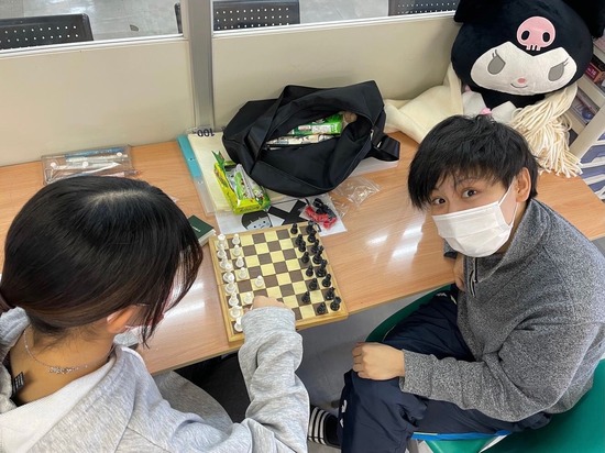 最近は課題も落ち着き、生徒とチェスやオセロをして楽しんでいます!