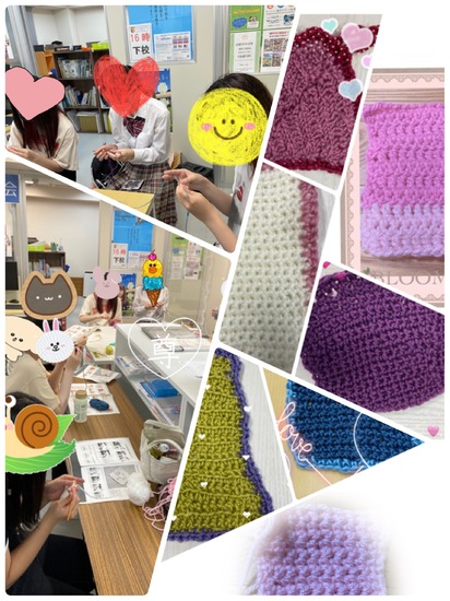 特別活動で『かぎ針で編むエコで可愛いアクリルたわし作り』をしました❣