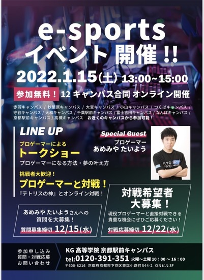 質問・対戦・見学希望の方は、京都駅前キャンパスまでお問い合わせ下さい!