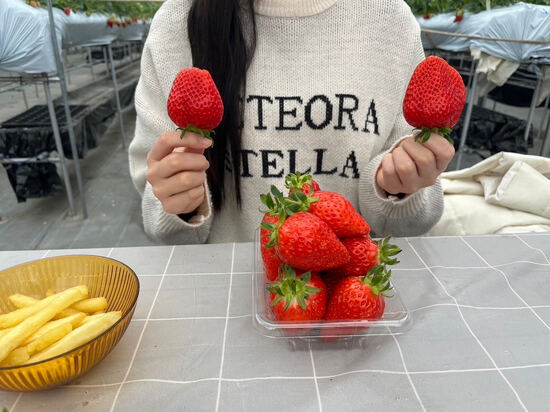 いちご狩りでは春の味覚を味わいました🍓
