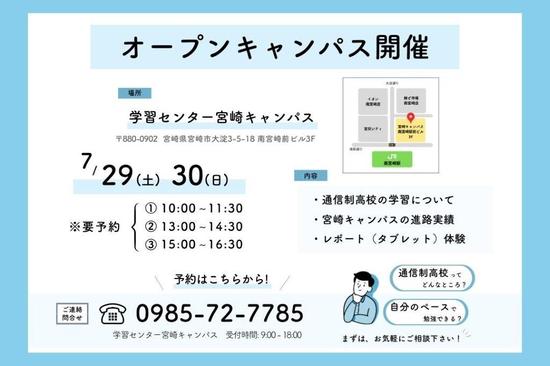 明日から2日間オープンキャンパスです 2023-07-28 お知らせ 学習センター 宮崎キャンパス 鹿島朝日高等学校連携教室 7/29(土)、30(日) 「祭 えれこっちゃみやざき」が開催されます。 どうぞ、学習センター宮崎キャンパスにも足をお運びください! ご予約枠にも空きございます 一覧へ