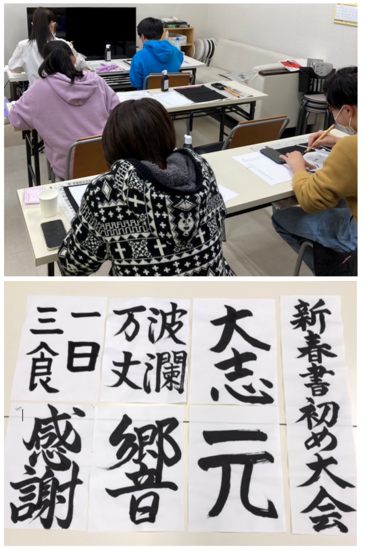 希望者を集って、キャンパスで書初め大会を行いました!