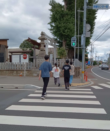 今回は4名の生徒が参加し、先生と一緒に避難場所の守谷小学校までの道を歩きました。