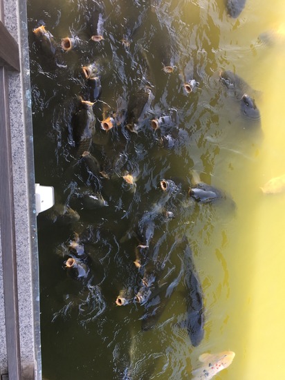 最後はお池の鯉に餌をやりました