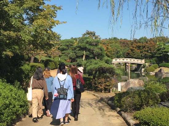 自由に散策したり、のんびりしたり、先生と日本庭園を回ったりします。