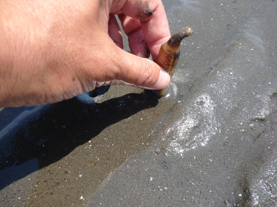 マテ貝は、内海の干潟で採れる貝で、巣穴に塩を入れると、ピュッと飛び出てきます😁