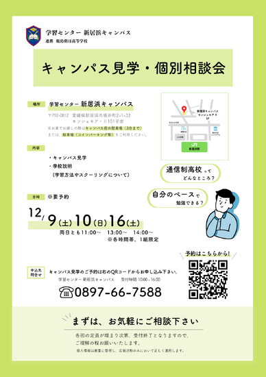 学習センター新居浜キャンパスでは、12月も個別相談会を実施しております。
