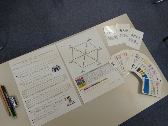 職業カード(写真や絵)を見ながら自身の興味ある仕事を分析したり、社会人になる前の心構え、最低賃金等の労働法についても勉強させていただきました。