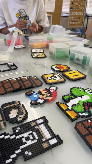 なつかしのアイロンビーズ 2025-10-10 お知らせ KG高等学院 小山キャンパス(提携鹿島朝日) アイロンビーズでマリオのウォールデコを作る! ということで、生徒の皆さんに協力してもらって いろんなパーツを作ってもらいました 「アイロンビーズって小学生以来!たのしー!」 と、案外みんなはまってくれて、先生ご満悦です笑 全部できあがったら、壁に貼って動画にしますので しばらくお待ち下さい☺ 一覧へ