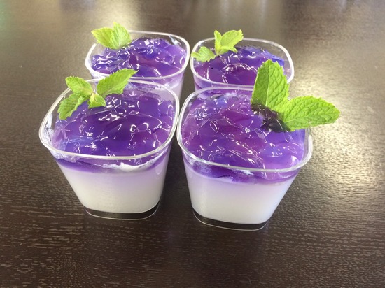 二色のゼリーが出来上がりました。あとは盛り付け♪