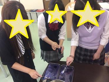 クッキングクラブ、今回のメニューは見た目にも涼し気、あじさいゼリーです。