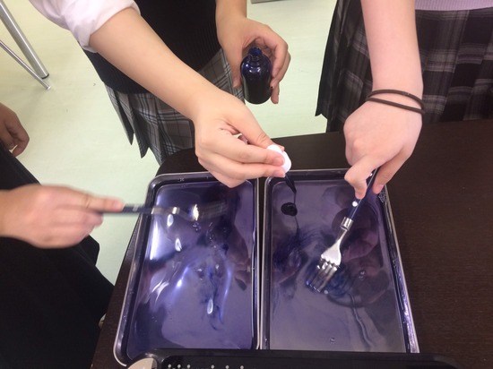 次に上の層。ゼラチンをあじさい色に染色します。