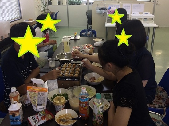 暑さに負けずに夏を乗り切ろう!と、キャンパスでたこ焼きパーティーを開催しました。