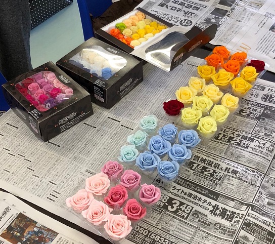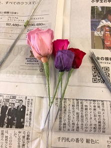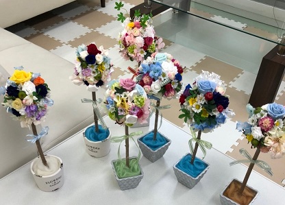 使うお花を選びましょう。「選ぶお花によって全然違う作品になりますよ。」と先生。