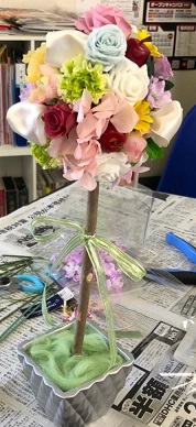 この土台にお花を挿していきます。どんな出来上がりになるのでしょうか。