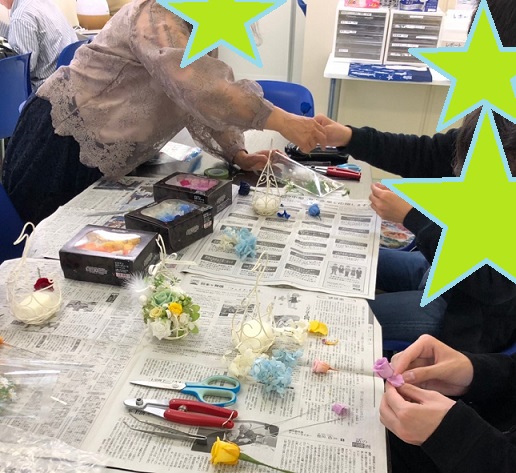 講師をお招きし、プリザーブドフラワーアレンジメントの講習会を行いました。