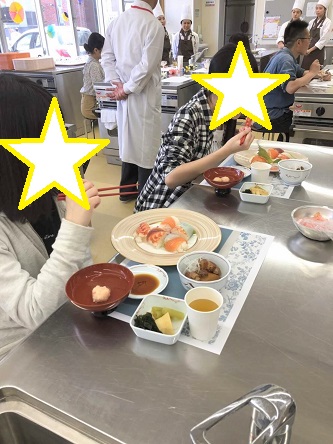 昼食は学食でおいしい食事をいただきました。