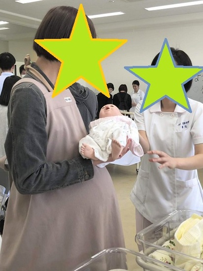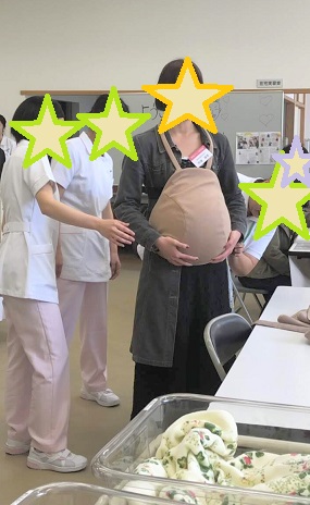 妊婦さん体験や、新生児を抱く体験。見るのとやるのは大違い!