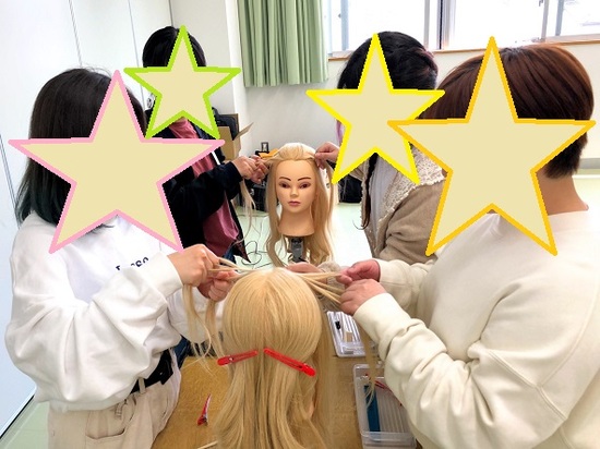 ヘアアレンジやまつ毛エクステ。手先が器用なのは誰かな?みんな笑顔で楽しそうです。