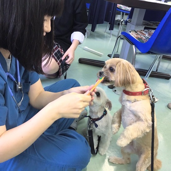 小山キャンパスの秋山先生の愛犬、小麦ちゃんと時雨ちゃんをお迎えして