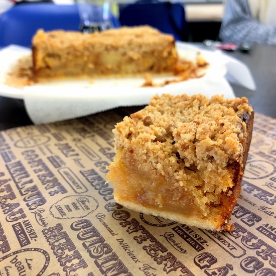 ・タルト生地、ケーキ生地、クランブルの3層にすることでリッチに