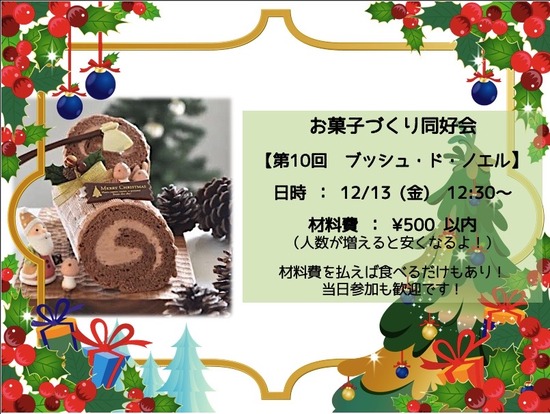 12月のお菓子作り同好会はブッシュ・ド・ノエル