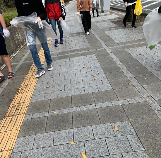 駅周辺のゴミ拾いをしました。