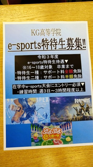 e-sports特待生募集 2020-09-29 お知らせ KG高等学院 小山キャンパス(提携鹿島朝日) 来年度からe-sports特待生を募集しています。 興味のある方は是非ご連絡ください。 080-3210-0423(火曜~土曜 10時~16時) 0285-38-9301(火曜~土曜 10時~16時) 上記時間外 080-3464-3811 一覧へ