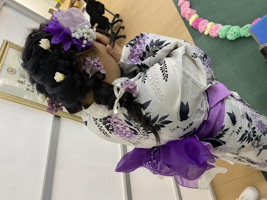 自分で作った髪飾りをつけて髪もセットもして浴衣も着てみました☆(髪飾りやコサージュ作り、ヘアセットしたい子大歓迎でーす☆いつでも声かけてね!)