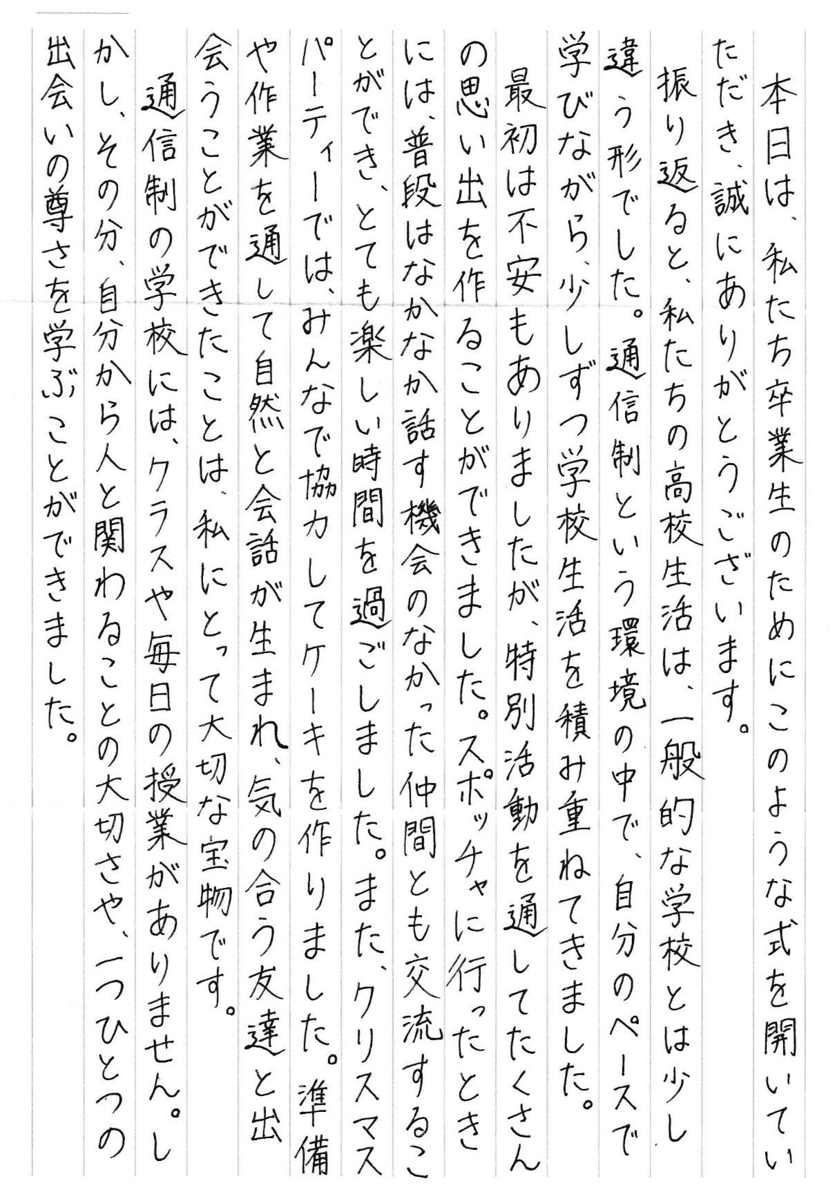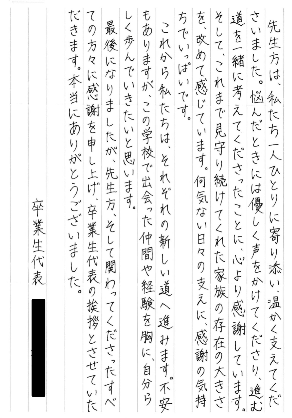 先日行われた卒業式で読まれた「卒業生挨拶」をご紹介します😊