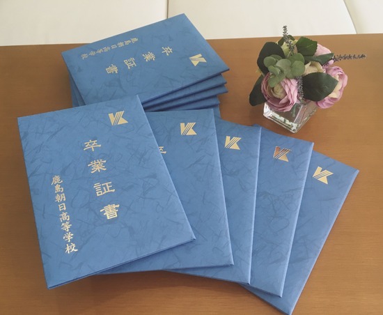 今年は卒業証書を少人数ごと分けてお渡ししています。