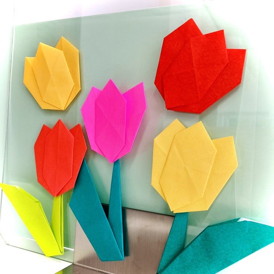 キャンパスでも春の訪れを楽しみに、スタッフで春らしい折り紙を制作しましたよ!