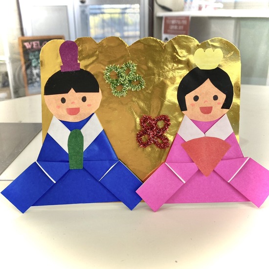 キャンパスではスタッフが折り紙でかわいいひな人形を作ってくれましたよ。