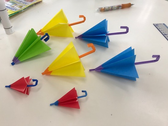 梅雨と言うことで、折り紙で傘を折りました(*'ω'*)